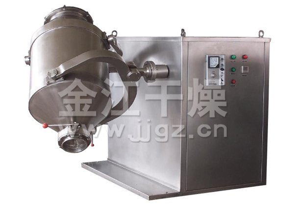 装料的筒体在主动轴的带动下,作周而复始的平移、转动和翻滚等复合运动,促使物料沿着筒体作三向复台运动,从而实现多种物料的互相流动、扩散、积聚、掺杂.以达到均匀混合的目的。